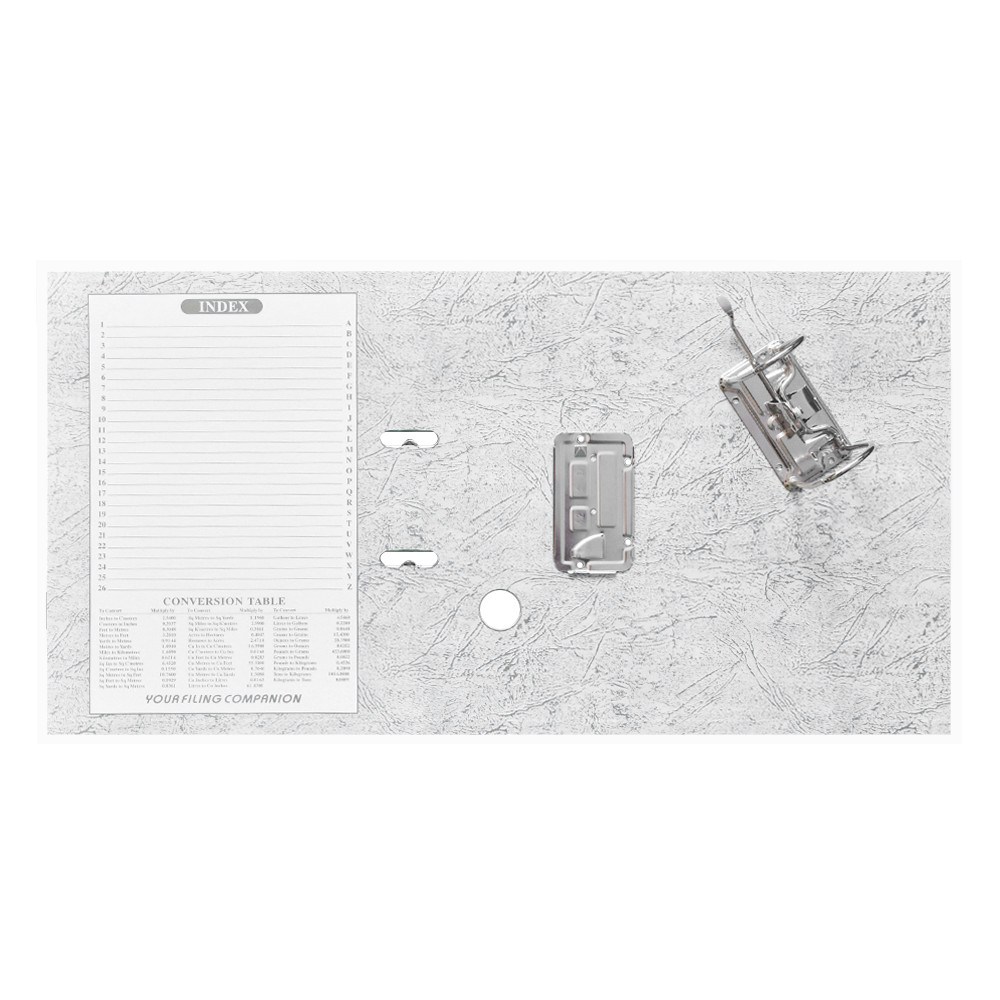 Emelőkaros iratrendező általános használatra. Kívül PP, belül fehér karton borítással, kihúzólyukkal. Cserélhető gerinccímke a feliratozáshoz. Tárolókapacitás 350 lap (A4 80gr.). A terméket lapra szerelve szállítjuk, a mellékelt emelőkaros szerkezet bepattintása gyors és egyszerű, 5 másodperc alatt elvégezhető és iratrendezőnk máris használatra kész! Katalóguskód: 12054