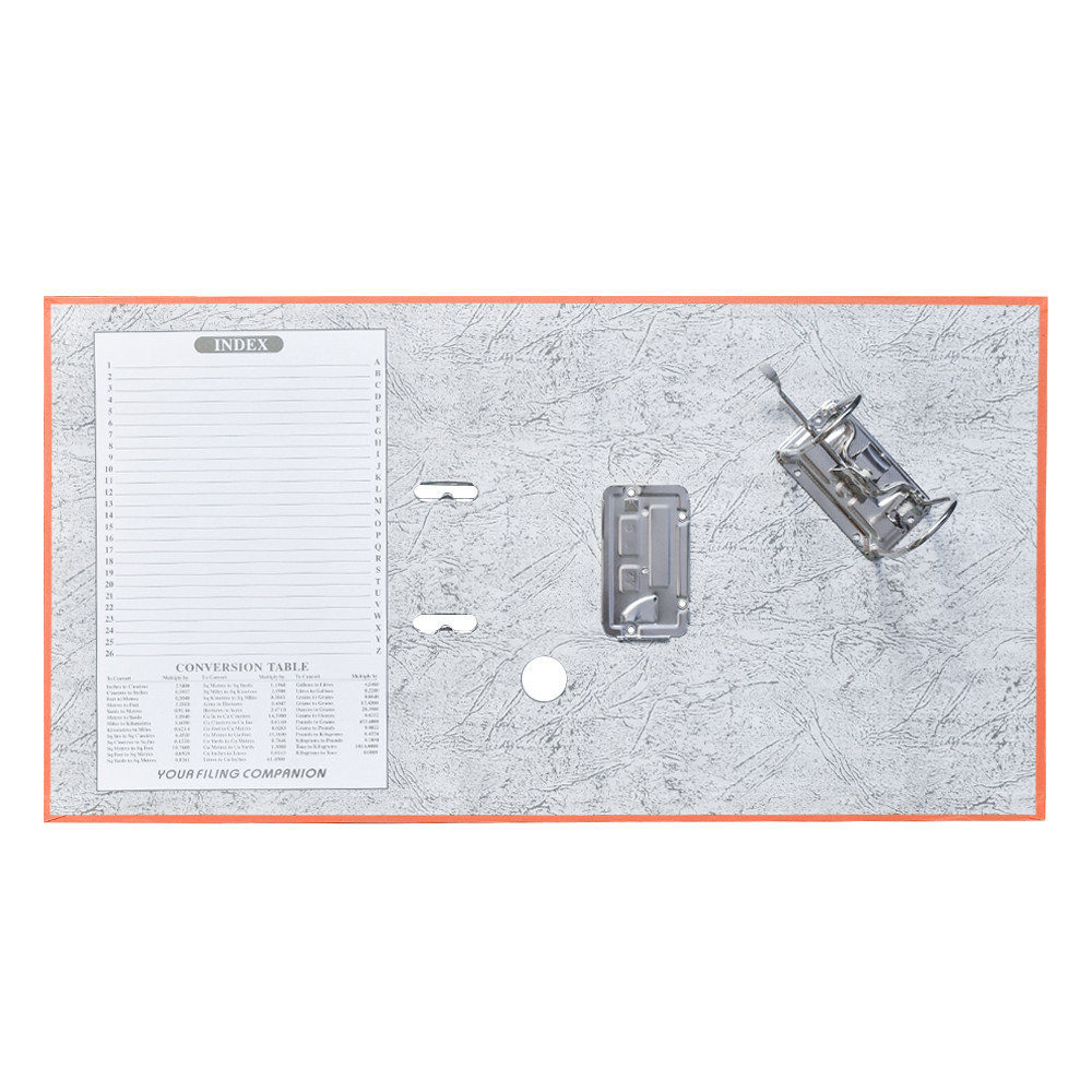 Emelőkaros iratrendező általános használatra. Kívül PP, belül fehér karton borítással, kihúzólyukkal. Cserélhető gerinccímke a feliratozáshoz. Tárolókapacitás 350 lap (A4 80gr.). A terméket lapra szerelve szállítjuk, a mellékelt emelőkaros szerkezet bepattintása gyors és egyszerű, 5 másodperc alatt elvégezhető és iratrendezőnk máris használatra kész! Katalóguskód: 26366