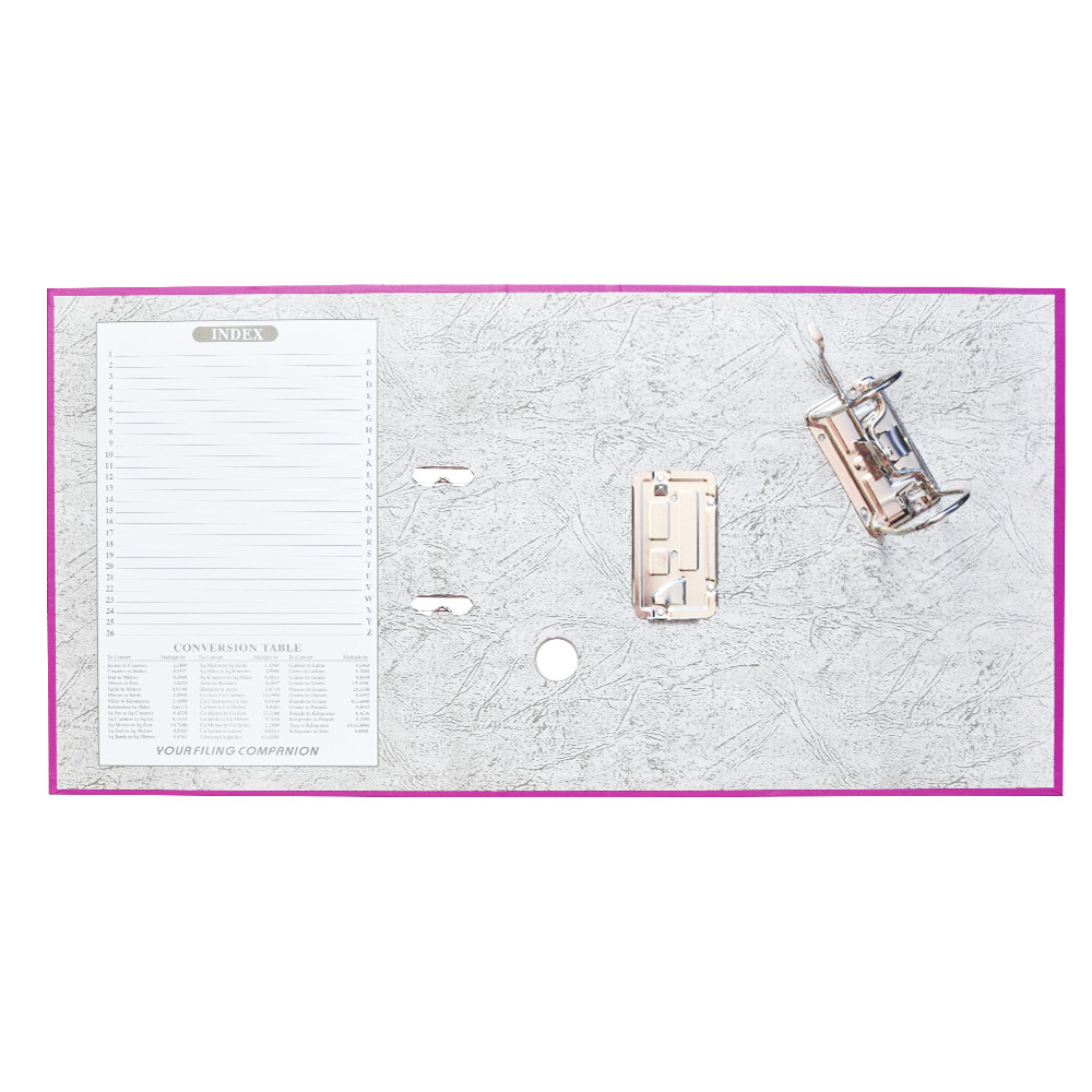 Emelőkaros iratrendező általános használatra. Kívül PP, belül fehér karton borítással, kihúzólyukkal. Cserélhető gerinccímke a feliratozáshoz. Tárolókapacitás 500 lap (A4 80gr.). A terméket lapra szerelve szállítjuk, a mellékelt emelőkaros szerkezet bepattintása gyors és egyszerű, 5 másodperc alatt elvégezhető és iratrendezőnk máris használatra kész! Katalóguskód: 12064