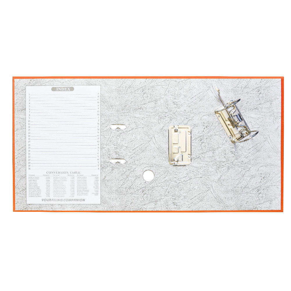 Emelőkaros iratrendező általános használatra. Kívül PP, belül fehér karton borítással, kihúzólyukkal. Cserélhető gerinccímke a feliratozáshoz. Tárolókapacitás 500 lap (A4 80gr.). A terméket lapra szerelve szállítjuk, a mellékelt emelőkaros szerkezet bepattintása gyors és egyszerű, 5 másodperc alatt elvégezhető és iratrendezőnk máris használatra kész! Katalóguskód: 12065