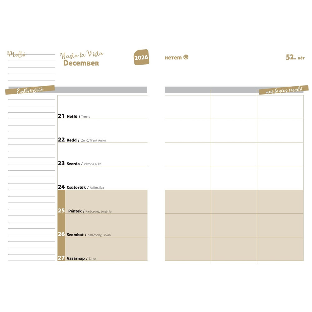 • 108 oldal heti beosztású naptár 2026. augusztus 17.- 2027. augusztus 22.-ig